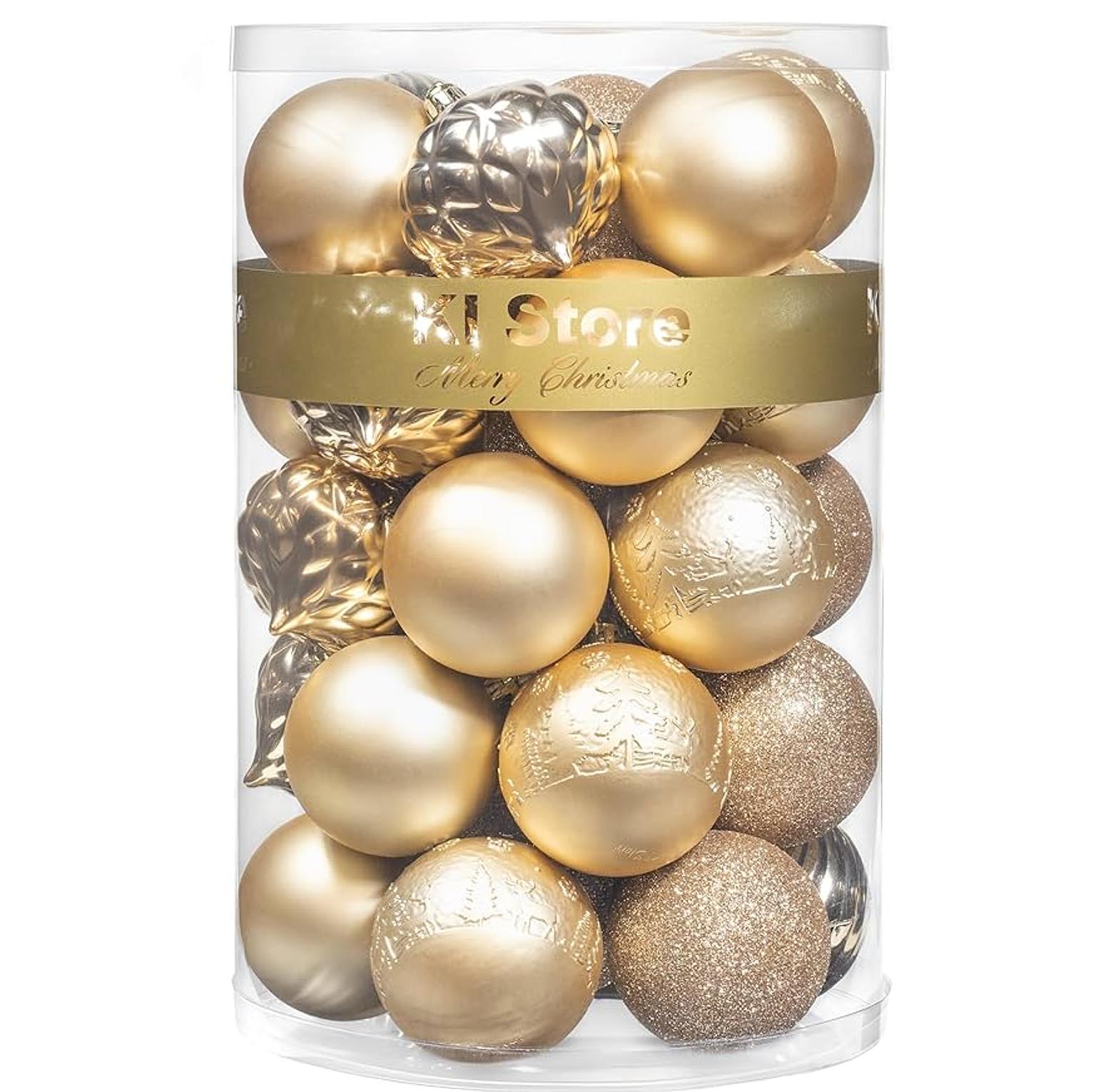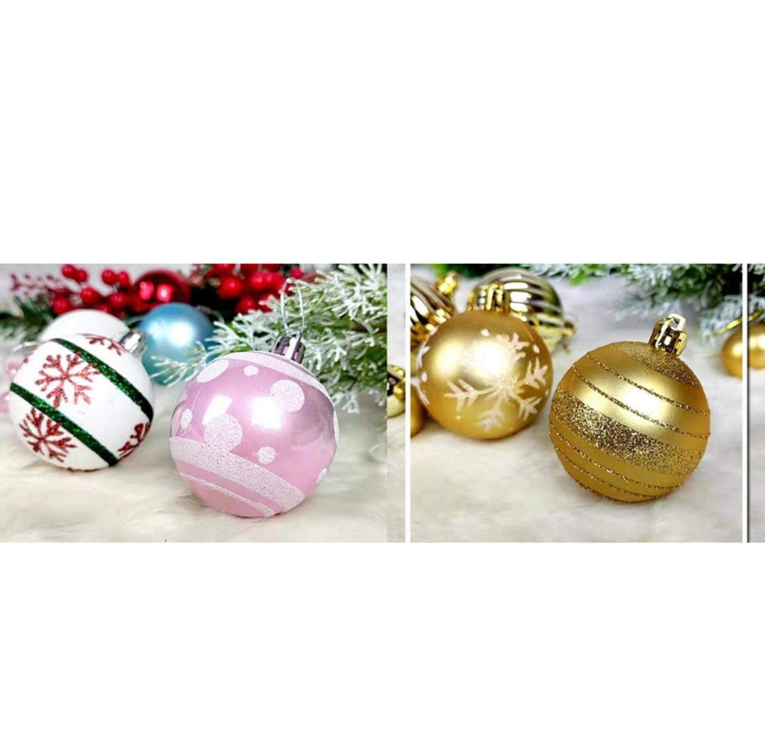 Transform your holiday decor with the comprehensive Deluxe Holiday Bauble Ornament 42-Piece Gift Set. This extensive collection of Christmas tree decor balls provides a perfect mix of finishes, including glossy, matte, glittered, and patterned styles, to create visual depth and appeal. The set includes classic festive hues like rich Gold and elegant blue, alongside striking white and pink options, all designed to catch the light beautifully. These lightweight yet durable hanging pendant ball ornaments are perfect for decking out your Christmas tree, adorning a garland, or filling a decorative bowl. Packaged securely, this set makes an ideal gift or a quick and stylish way to achieve a coordinated holiday look in your home.