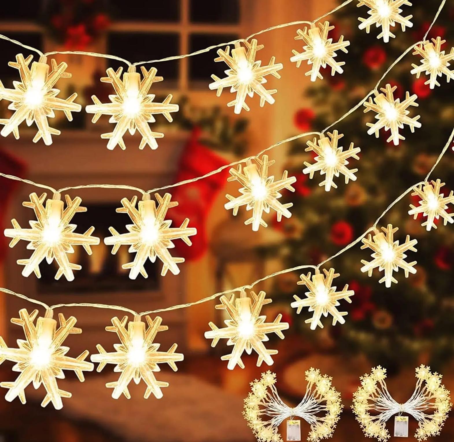 Capture the timeless beauty of winter with this exquisite garland of bright, detailed snowflake lights. Each clear, crystalline snowflake diffuses the warm LED light, casting a delicate, shimmering pattern that transforms any space into an ethereal wonderland. Because this set boasts a generous 6-meter length and is conveniently battery-operated, you are free to illuminate tricky spots, from window frames and mantels to holiday wreaths, without ever worrying about finding an outlet. Complete control is at your fingertips with the included remote, allowing you to easily adjust settings and ensure your home radiates the perfect, dazzling holiday spirit throughout the season.