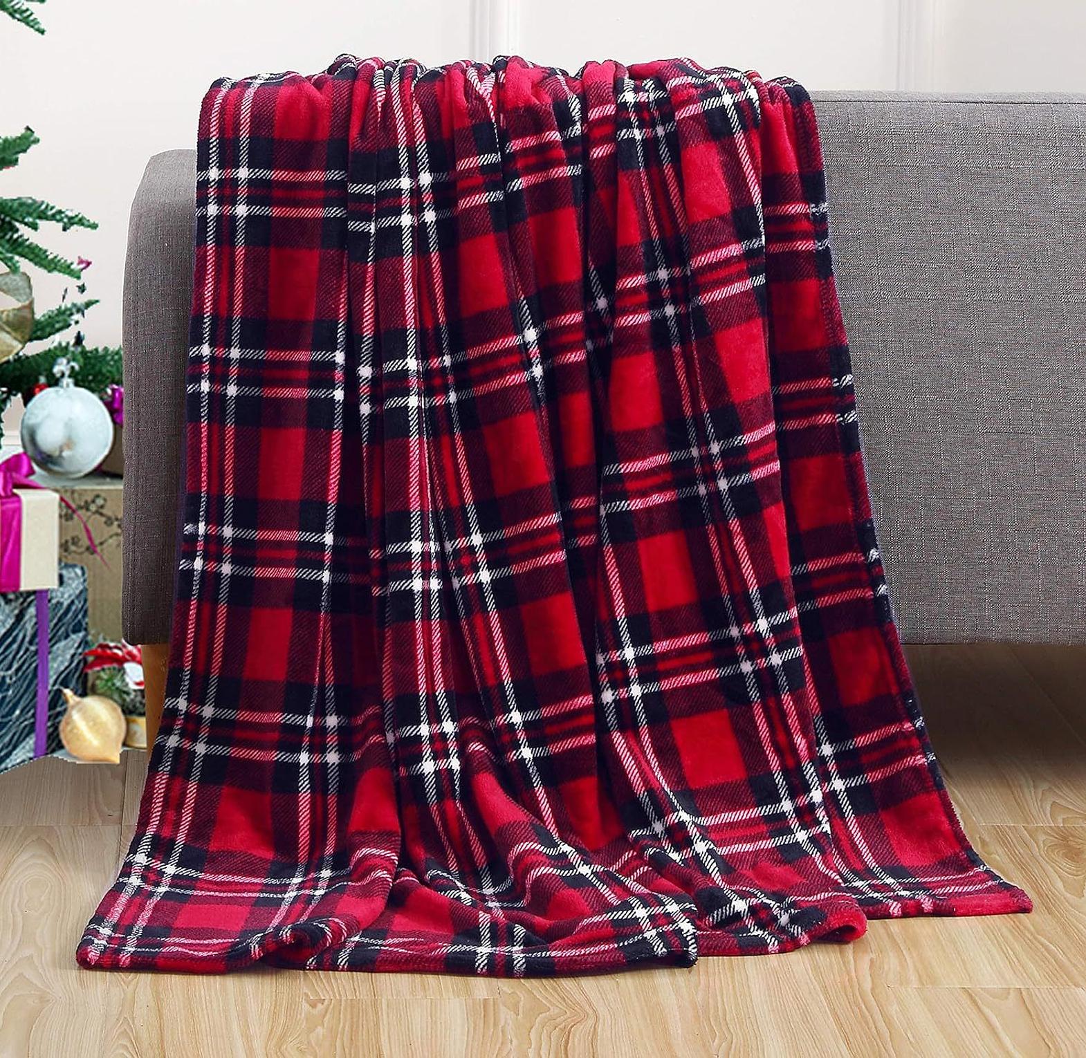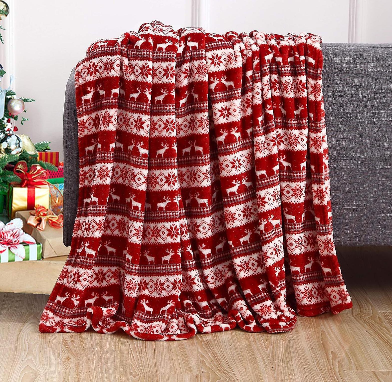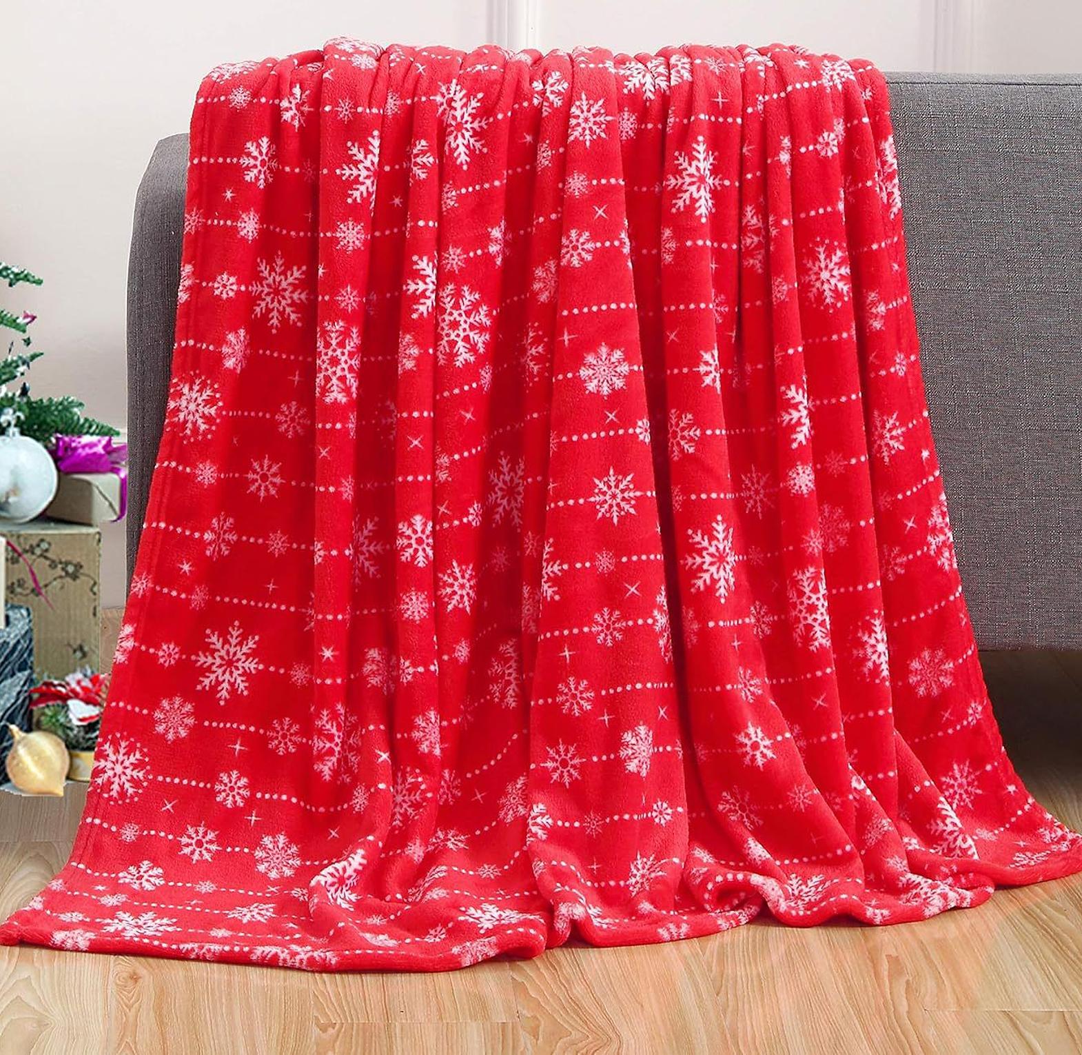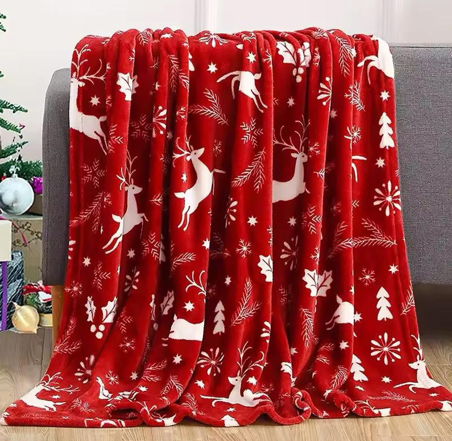 Enhance your home's comfort and holiday decor with the luxurious Festive Reindeer Flannel Plush Winter Throw Blanket. This exceptionally soft, thick throw is made from premium flannel material, providing an immediate source of warmth and a velvety feel against your skin. The vibrant red fabric is adorned with an intricate white snowflake and elk printed design, making it a beautiful accent piece for any couch, armchair, or bed. Ideal for an office nap or cozying up during movie night, this blanket is also practical: it is machine washable for effortless care and its lightweight yet warm nature makes it suitable for travel. Enjoy superior, all-season comfort with this durable and cheerful essential.