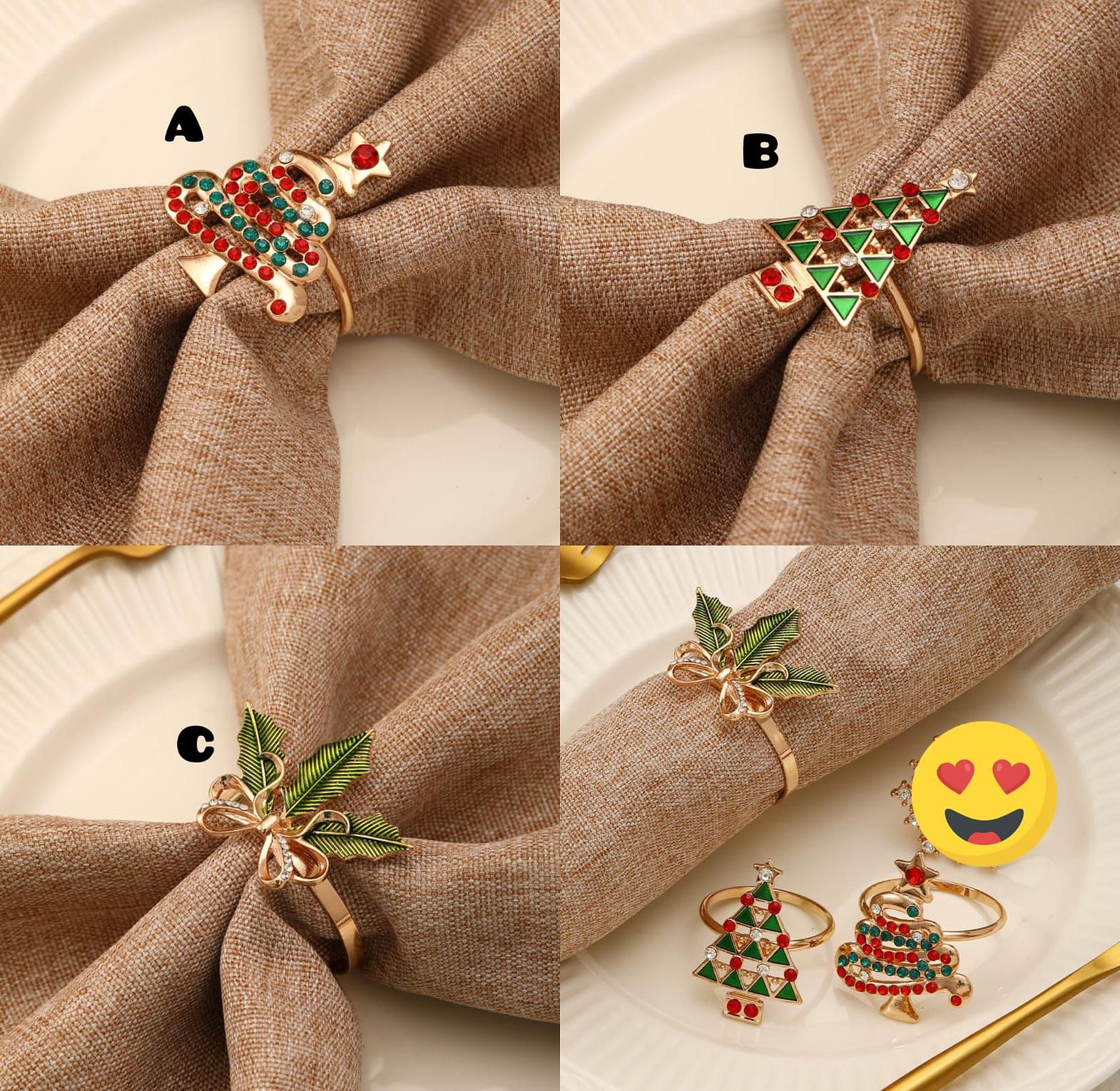 Complete your holiday tablescape with the elegant Jeweled Festive Napkin Rings, a charming 2PCS set designed to impress your guests. Crafted from a strong, high-quality alloy material, these rings are hard and not easy to deform, ensuring they maintain their sophisticated shape season after season. The designs, available under Codes A, B, and C, include stylized Christmas trees and holly or snowflakes, each richly detailed with glittering rhinestones in festive red and green. Beyond decorating the dining table, these adjustable napkin rings can be creatively used to embellish bottles of wine, cakes, or small gifts, adding a luxurious sparkle to various parts of your celebration.