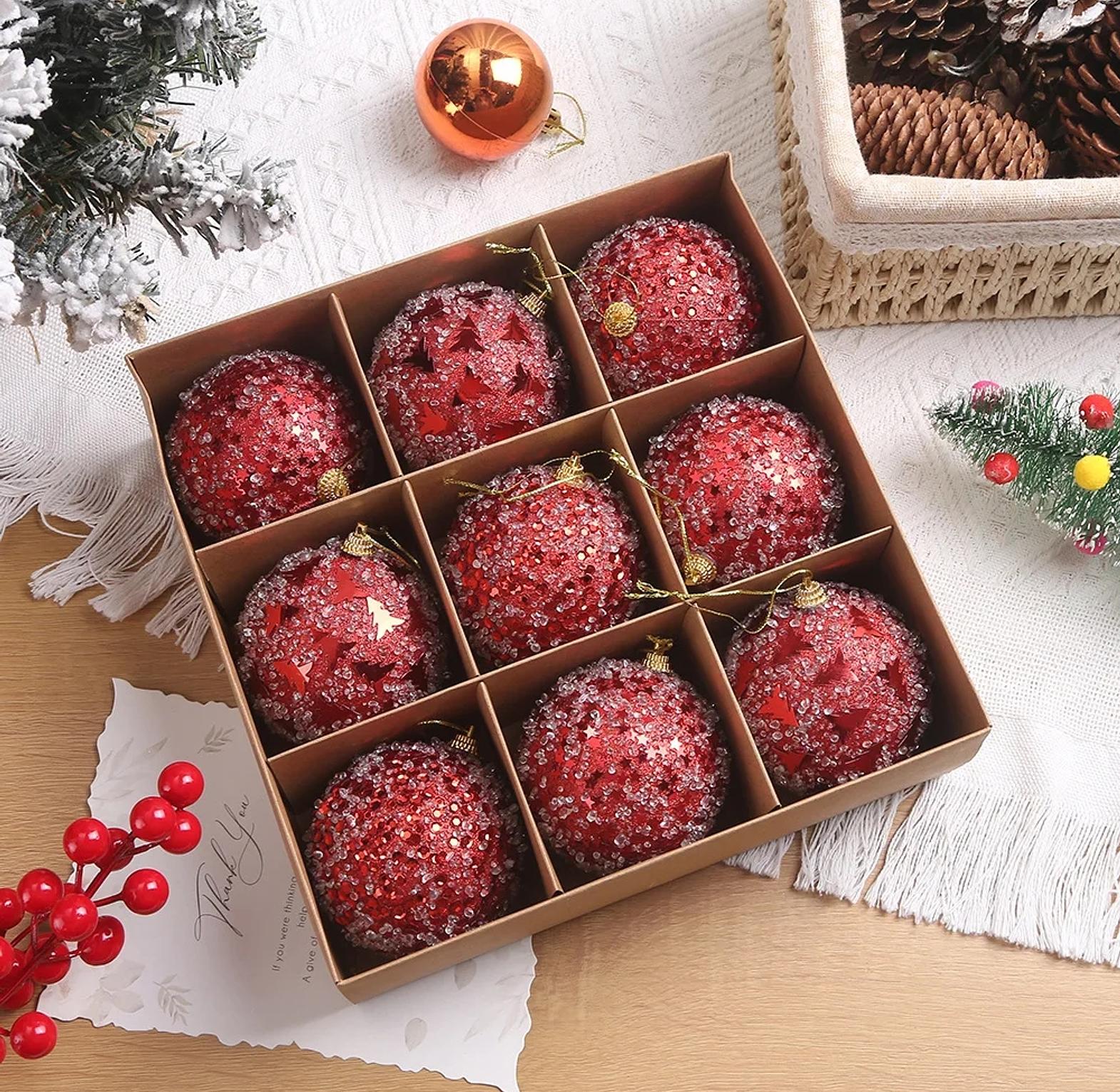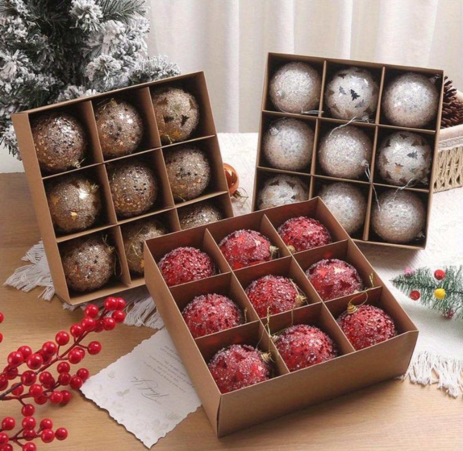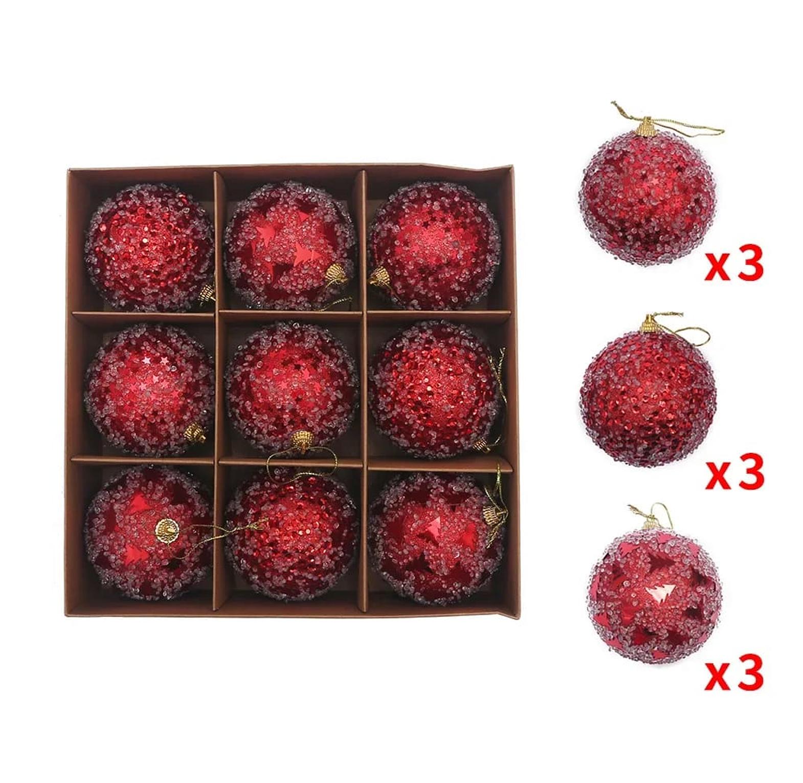 Transform your tree into a brilliant showcase with this stunning collection of premium Christmas balls. Each set features nine generously sized, 8 cm ornaments meticulously covered in dazzling glitter and intricate patterns, catching the light from every angle for a truly magical ambiance. Crafted for lasting beauty and featuring secure caps, these spheres are available in three enchanting colour themes: radiant golds, elegant silvers, and bold festive reds. This collection offers the perfect blend of texture and luminosity, making it effortlessly simple to create a cohesive and luxurious look that will be admired by all your holiday visitors.