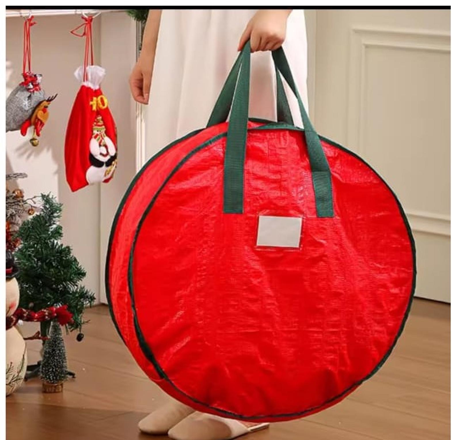 Protect your precious seasonal accents with the convenient Round Heavy-Duty Wreath & Garland Storage Tote, the ultimate home organiser for circular decorations. Measuring 76cm in diameter and 20cm high, this bag is perfectly sized for storing multiple garlands or a large Christmas wreath. Constructed from durable, high-quality material, the tote is both waterproof and tear-proof, ensuring year-round protection from humidity and damage. The design includes strong carry handles, a reliable, smooth-gliding zipper closure, and a clear external tag window for easy content identification. Available in classic holiday Black, Red, and Green, this storage solution simplifies post-holiday cleanup and ensures your decorations are pristine for the next season.