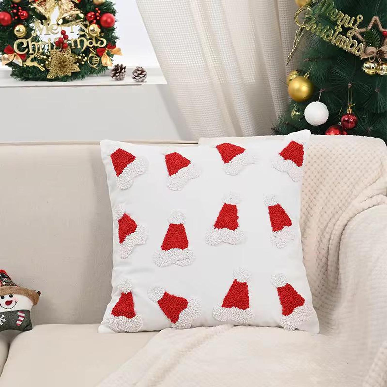 Add a playful, artisanal touch to your home with the premium Santa & Snowflake Pillow Cover Set. These Christmas quality throw pillow covers/cases use the popular punch needle technique, which creates a wonderful, soft, three-dimensional texture on the front panels. The set includes whimsical designs such as a lively Santa Claus figure and intricate snowflakes, available on a neutral background to make the festive red and white colors truly pop. Crafted for durability and style, these covers easily refresh your sofa, armchair, or bed, giving your space a sophisticated yet fun holiday makeover. They are an effortless way to achieve a warm, inviting atmosphere for all your seasonal gatherings.