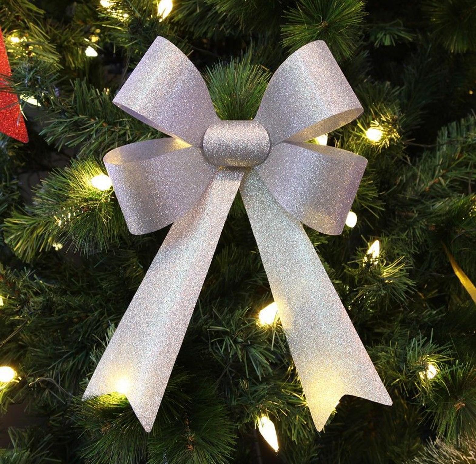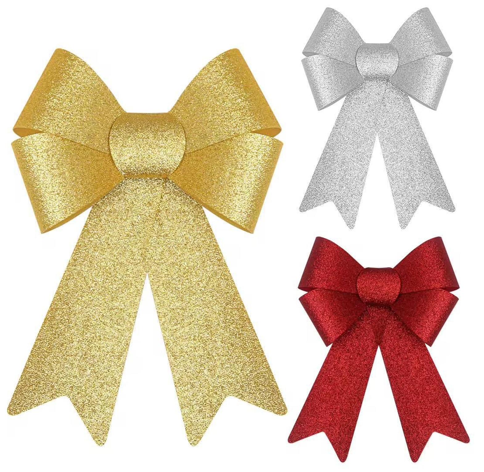 Elevate your holiday decorations with the magnificent Sparkle Luxe Glitter Bow Collection. Crafted from durable, lightweight plastic, these oversized 25cm bows feature a gorgeous, shimmering finish that reflects light beautifully, instantly bringing an opulent festive spirit to any space. Available in a sophisticated assortment of brilliant Gold, timeless Red, and elegant Silver, they offer versatile decoration options for various themes. Use them to create a dramatic focal point on your main Christmas tree, adorn large wreaths, or enhance the presentation of your most treasured holiday gifts. Their robust construction ensures they maintain their perfectly tailored shape season after season, making them a reusable, high-impact staple for all your annual decorating traditions.