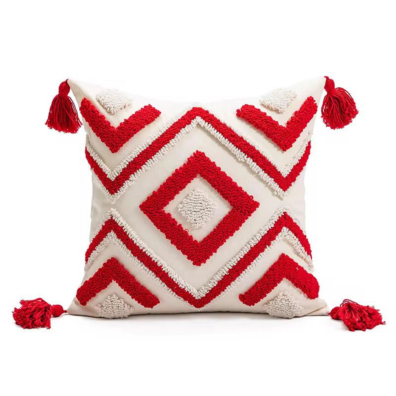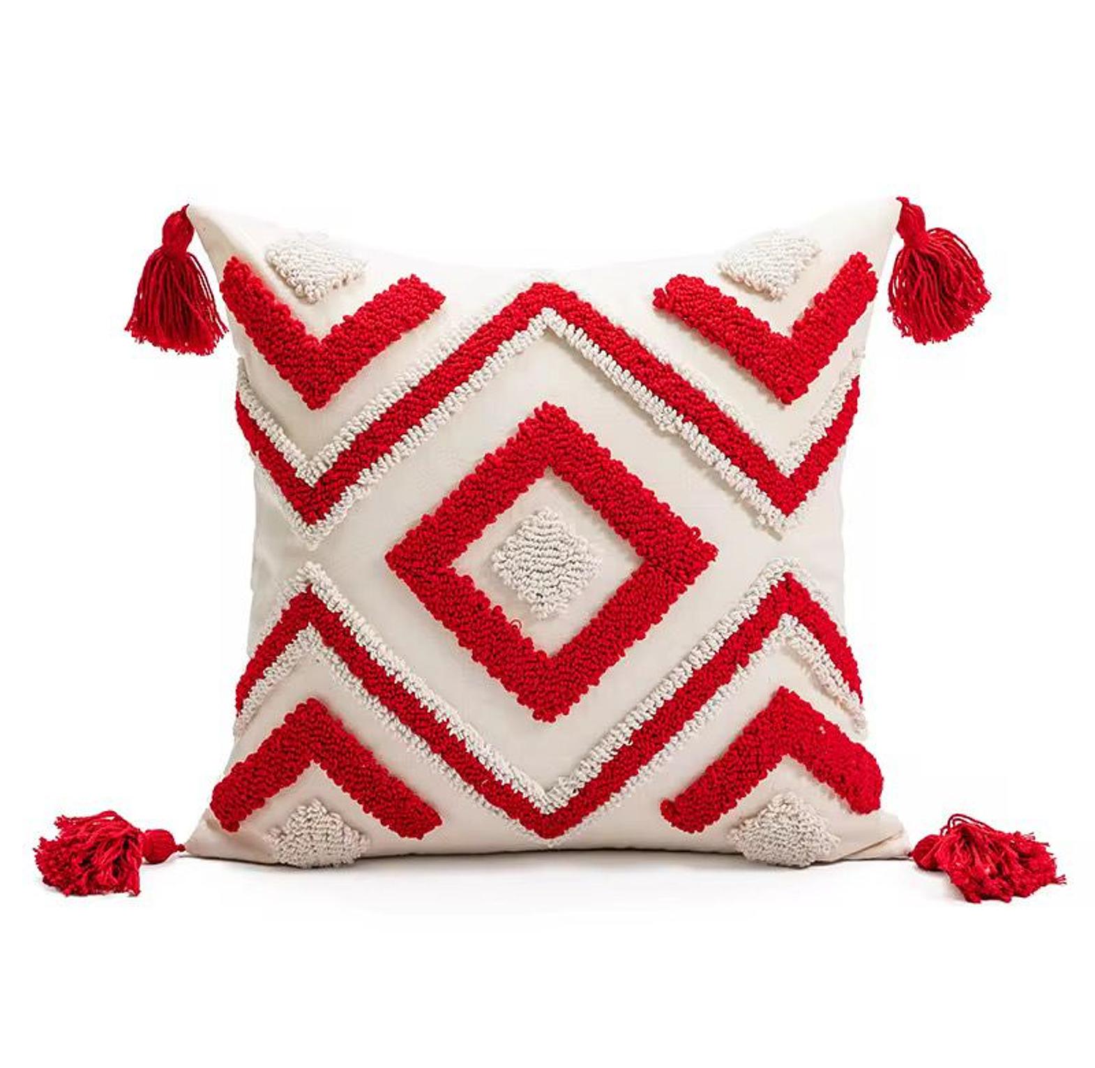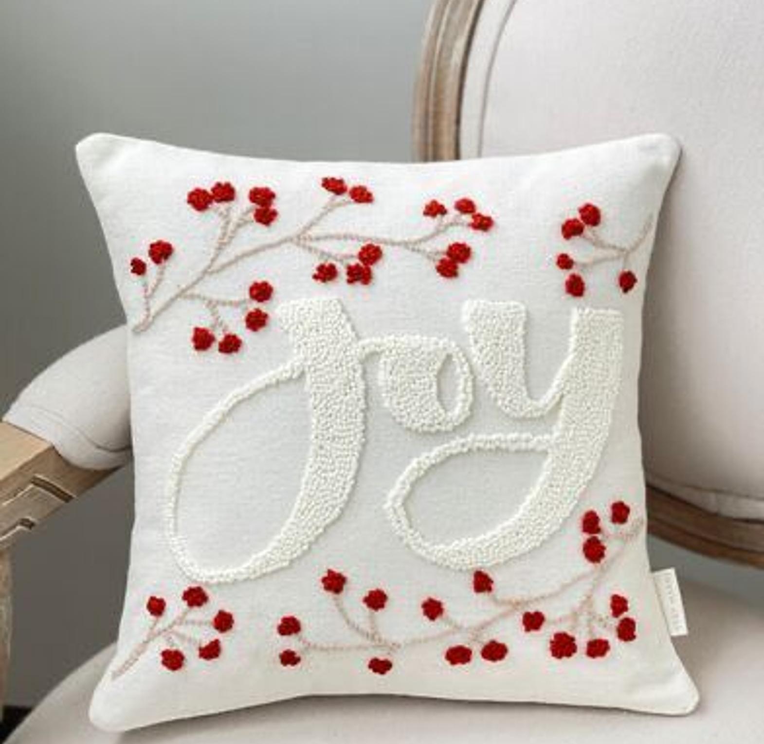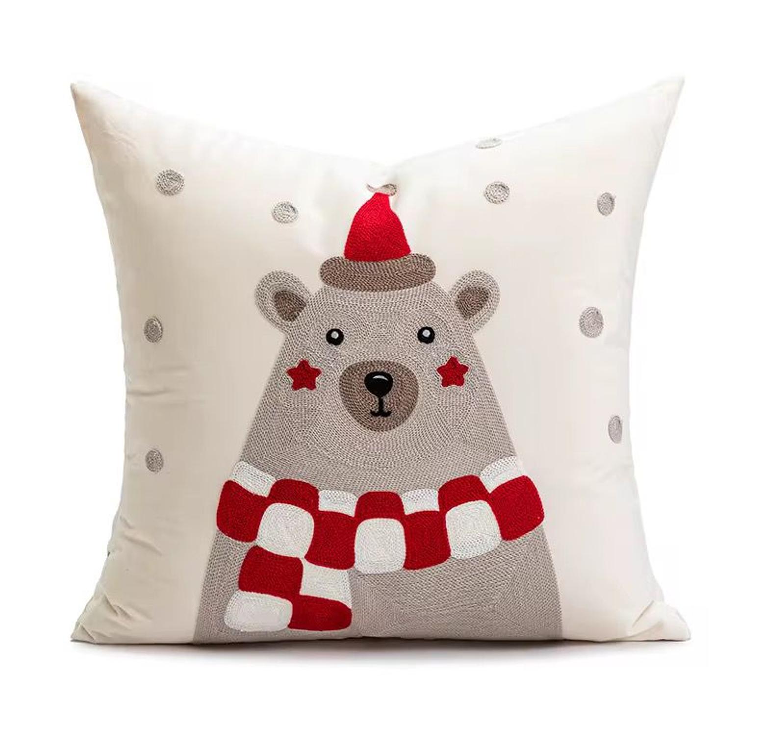 Liven up your seasonal space with the enchanting Whimsical Cheer Embroidered Holiday Cushion Cover Set. This collection features four unique, high-quality covers, each showcasing imaginative designs on a clean, bright White base. The festive spirit is captured through rich embroidery and tufting, primarily in classic Red alongside other cheerful holiday colors like gold, blue, and green. Motifs include a charming polar bear in a scarf, abstract patterns with tassels, a bold "Joy" design with berries, and a string of colorful lights. These covers offer a perfect blend of cozy, handcrafted texture and whimsical holiday imagery. They are a delightful and simple way to refresh your existing décor, ensuring your pillows are both inviting and perfectly styled for the Christmas season.