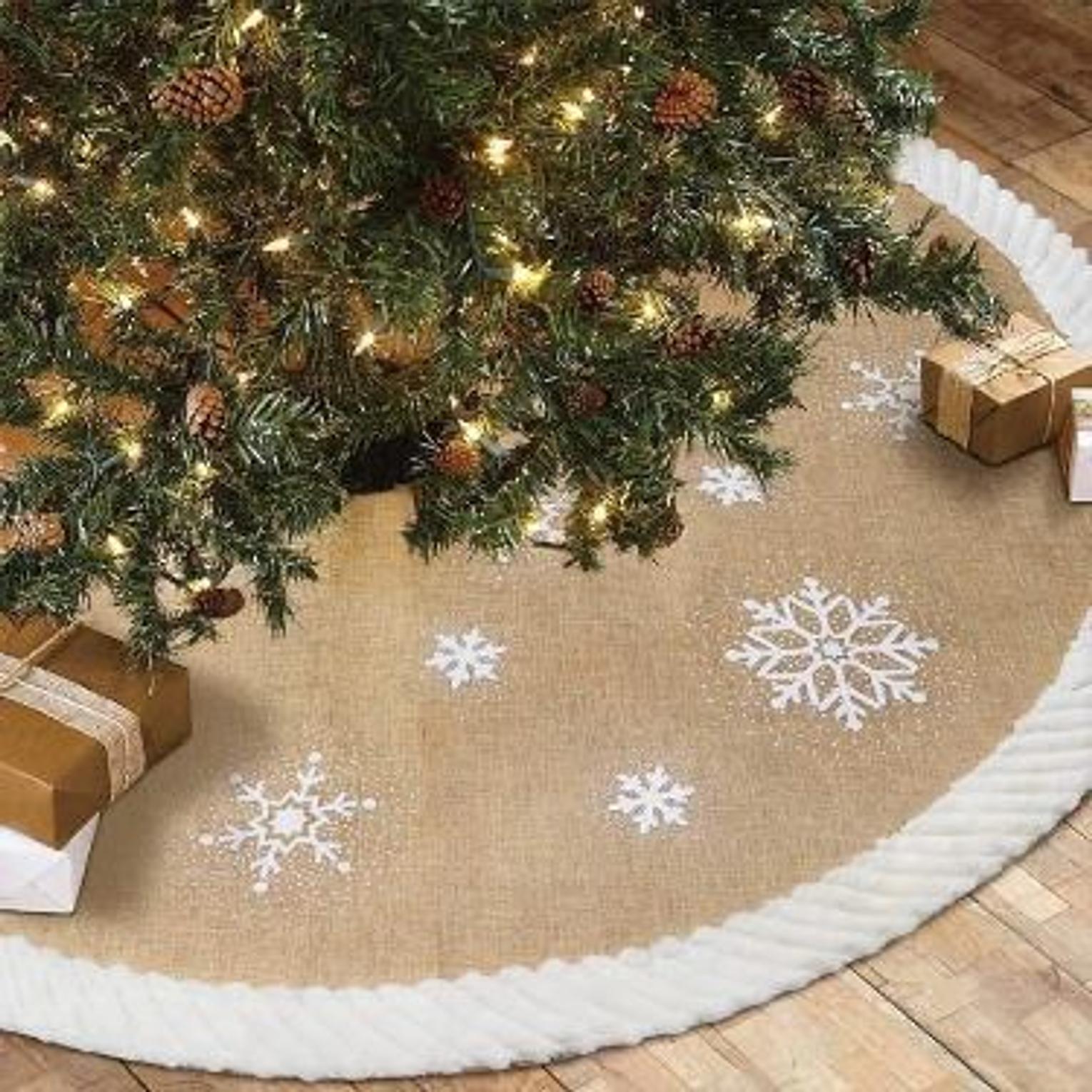 Anchor your holiday display with the charming Winter Wonderland Snowflake Tree Skirt, designed to add a warm, finished look beneath your Christmas tree. This delightful 90cm diameter skirt features a richly colored, festive Red fabric base and White cream accents that provides a vibrant contrast to your floor and the tree itself. It is beautifully accented with intricate, plush White snowflake patterns that evoke the serene magic of a snowy holiday season. Beyond its aesthetic appeal, the skirt offers a practical solution, concealing the tree stand while creating an attractive stage for wrapped presents and helping to keep the area tidy by collecting stray needles. The soft, durable material ensures this foundational piece will remain a cherished part of your seasonal traditions for years to come.