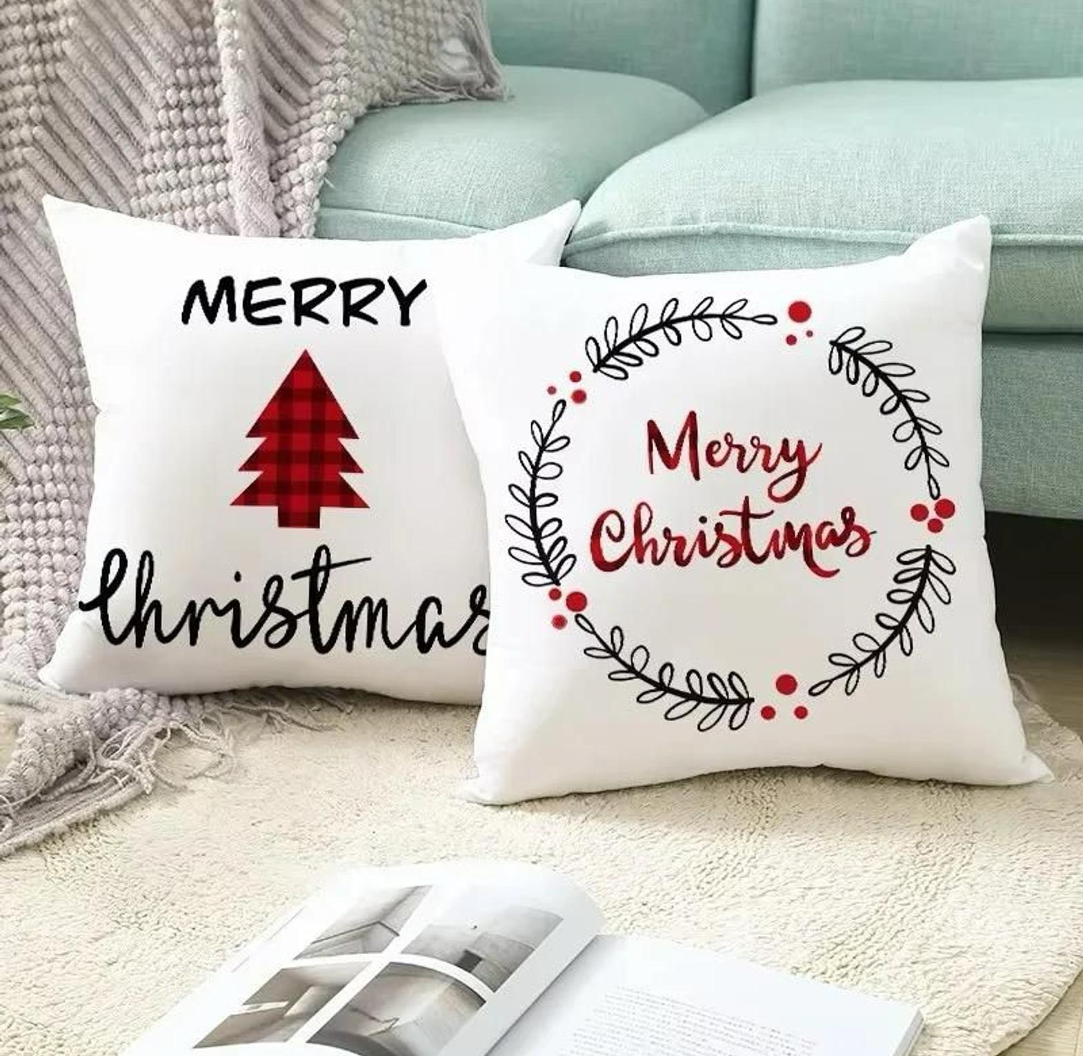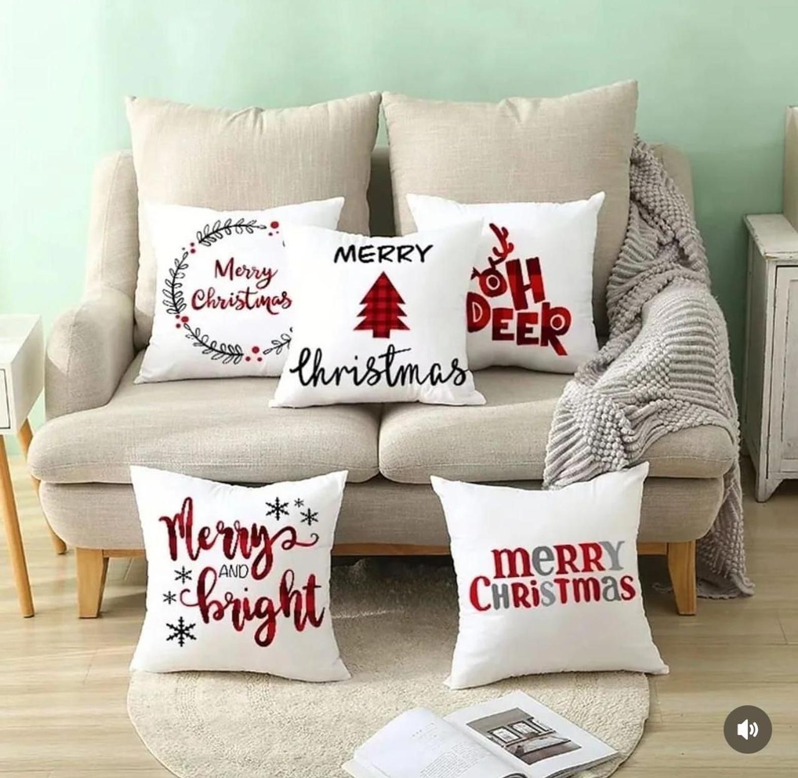 Transform your home décor for the season with the delightful Festive Cheer Christmas Message Cushion Cover Set. This collection includes five separate, high-quality 45 X45 cm covers, all featuring a crisp White base fabric adorned with vibrant Red and Black holiday messages and iconic graphics. Designs range from classic phrases like "Merry Christmas" and "Merry and Bright" to whimsical graphics such as reindeer silhouettes and Christmas trees, ensuring a coordinated yet varied look. These covers are an effortless way to introduce sophisticated seasonal patterns and warm greetings to your seating areas. Crafted for durability and easy care, they allow you to quickly update your pillows, adding comfort and a personalized, welcoming touch to your holiday entertaining space.