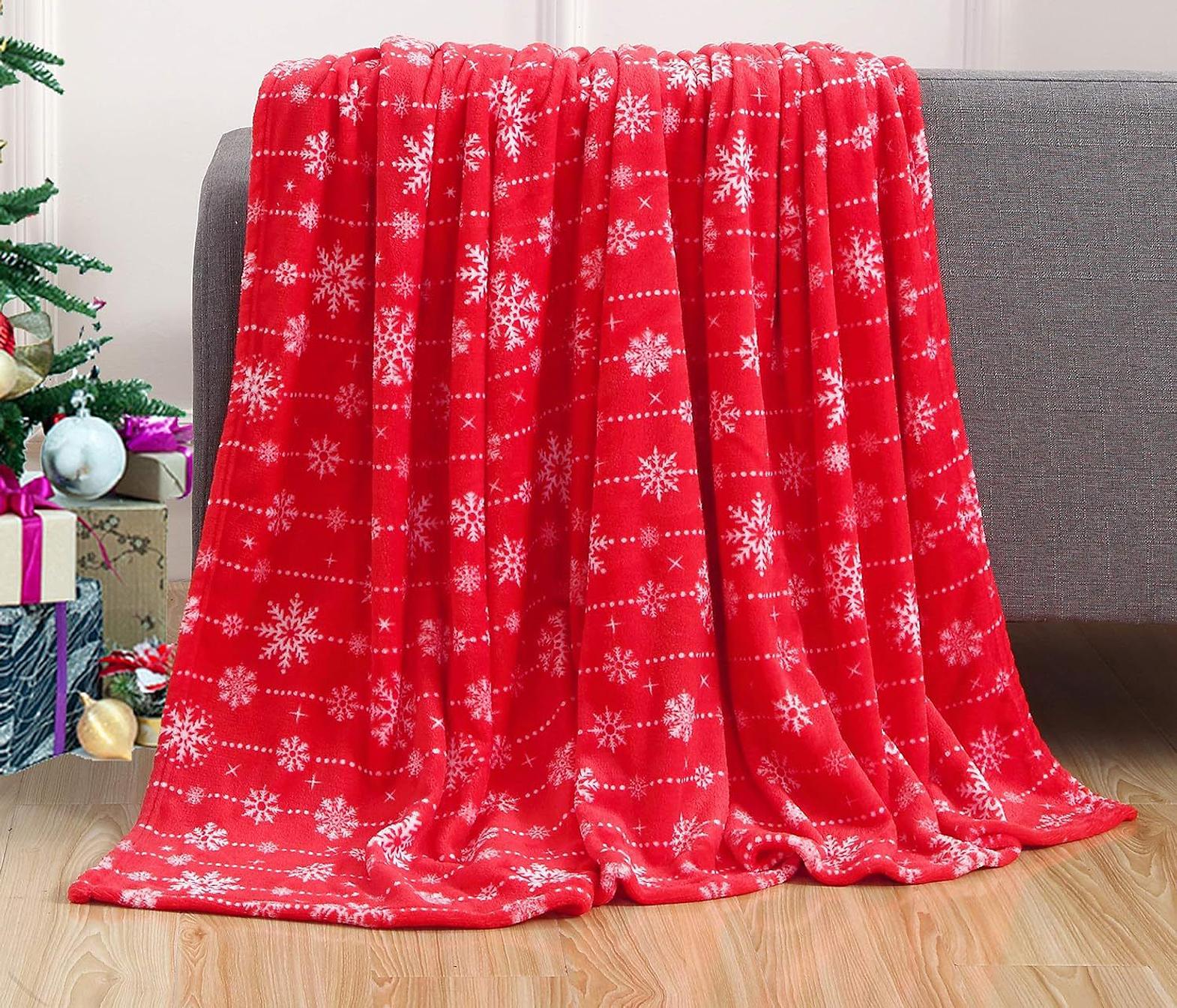 Enhance your home's comfort and holiday decor with the luxurious Festive Reindeer Flannel Plush Winter Throw Blanket. This exceptionally soft, thick throw is made from premium flannel material, providing an immediate source of warmth and a velvety feel against your skin. The vibrant red fabric is adorned with an intricate white snowflake and elk printed design, making it a beautiful accent piece for any couch, armchair, or bed. Ideal for an office nap or cozying up during movie night, this blanket is also practical: it is machine washable for effortless care and its lightweight yet warm nature makes it suitable for travel. Enjoy superior, all-season comfort with this durable and cheerful essential.