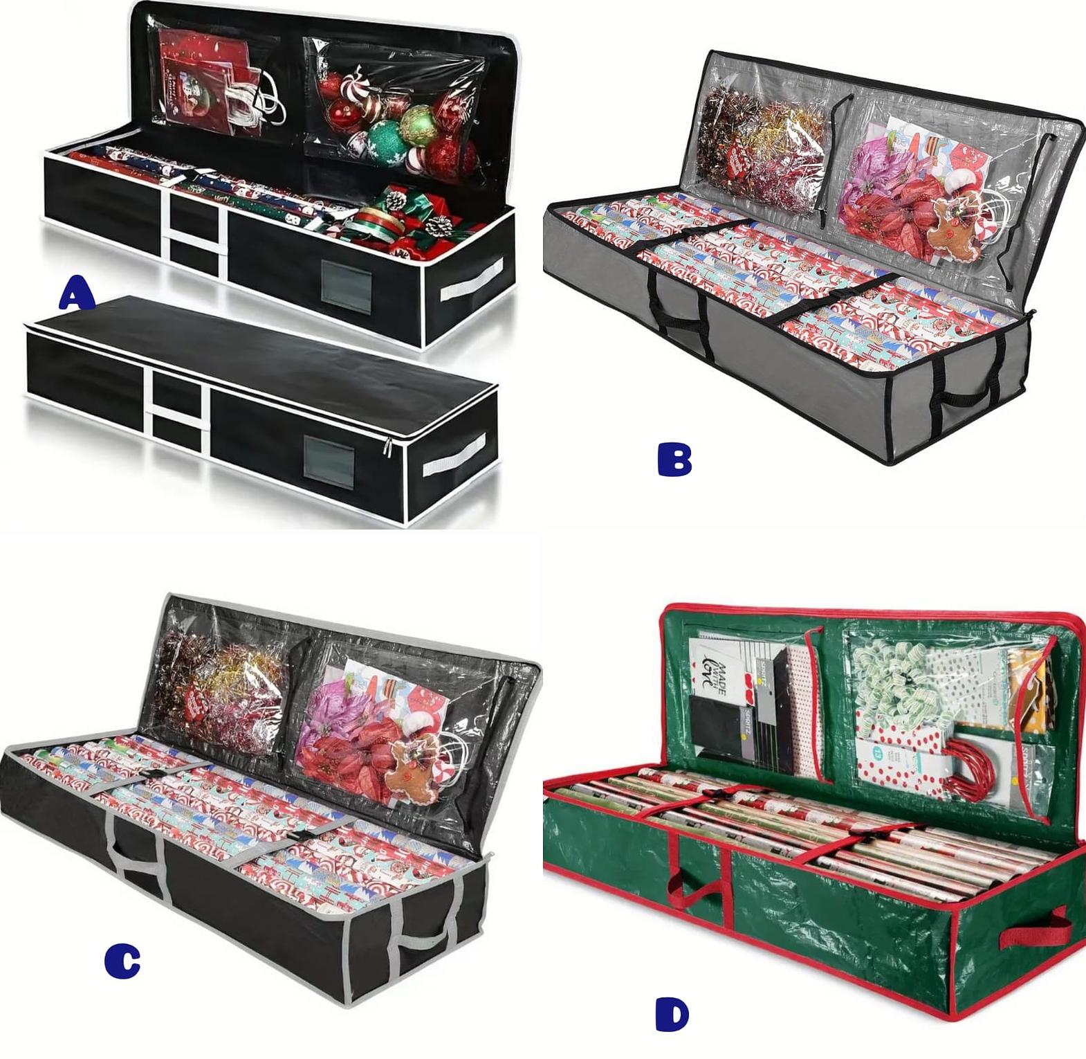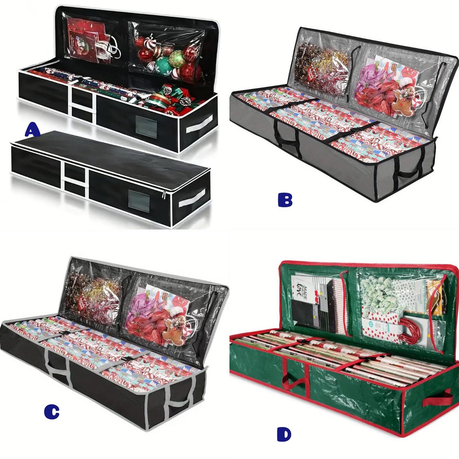 Tame the post-holiday mess with the ingenious Flat Utility Gift Wrap & Accessory Organizer Tote, a high-capacity home organiser that keeps your supplies neat and secure. This slim, space-saving design measures L 105cm * W 35cm * H 16 cm, making it ideal for discreet storage under a bed, on a shelf, or in a closet. Constructed from a resilient, high-quality material that is both waterproof and tear-proof, this tote shields your valuable paper rolls, ribbons, and bows from moisture and dust damage. Featuring integrated compartments for rolls and clear zipper pockets for small items, the organizer simplifies prep for your next gift-giving occasion. Select your preferred style from the available options: Black/White (A), Grey (B), Black/Grey (C), or Green (D).