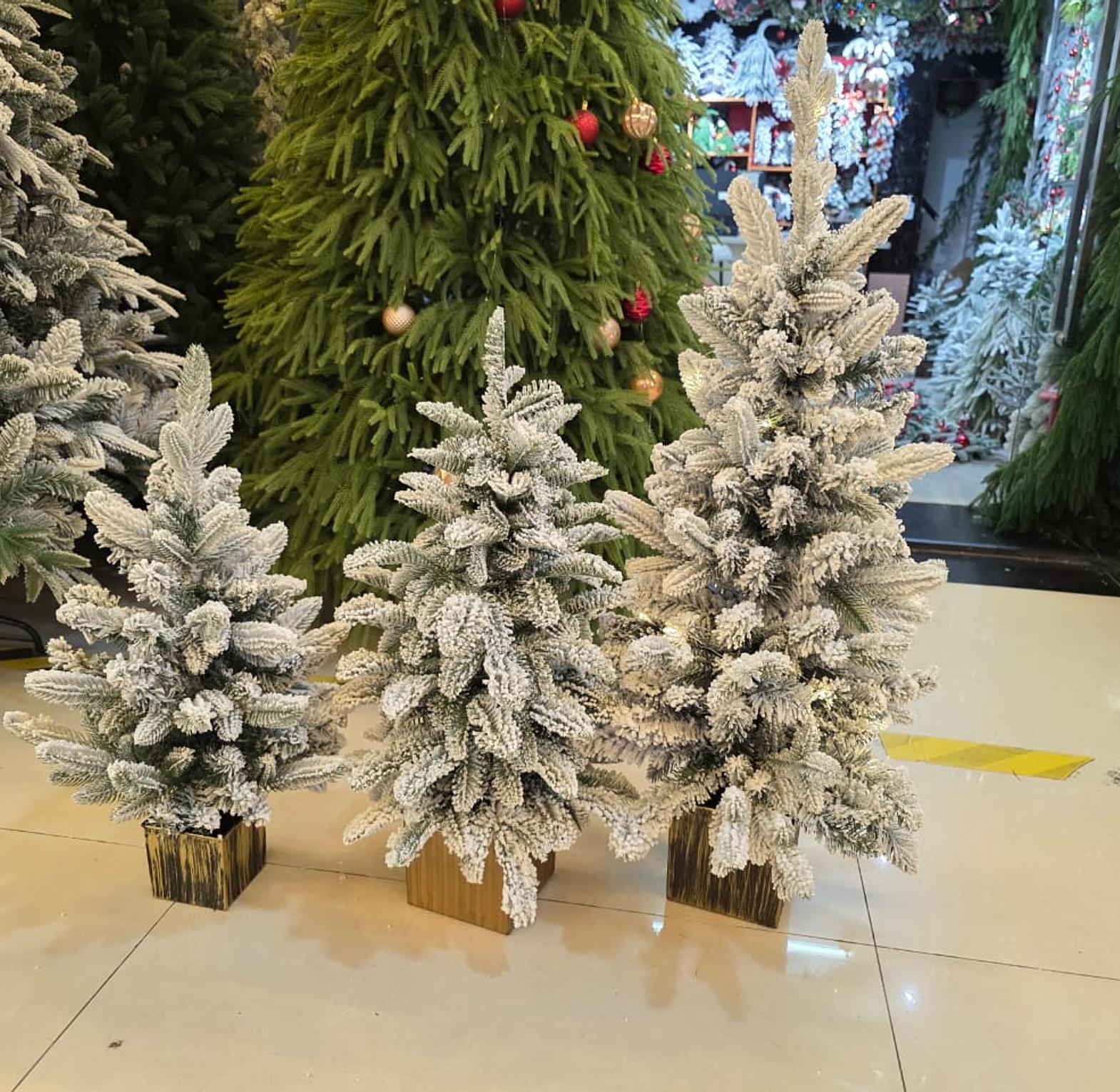 Transform any small space into a cozy, festive focal point with this enchanting set of three pre-lit artificial trees. Ranging in impressive height (90 cm, 70 cm, and 40 cm), this trio is meticulously dusted with heavy, realistic flocking that perfectly captures the look of fresh snowfall, lending an irresistible, rustic charm to your decor. Each miniature pine arrives ready to glow, effortlessly illuminated with soft, warm lights that eliminate the hassle of stringing bulbs. Set upon stable, charming wooden-style bases, these trees allow you to create stunning, multi-level displays on a console table or hearth, ensuring your holiday ambiance is layered, luminous, and simply unforgettable.