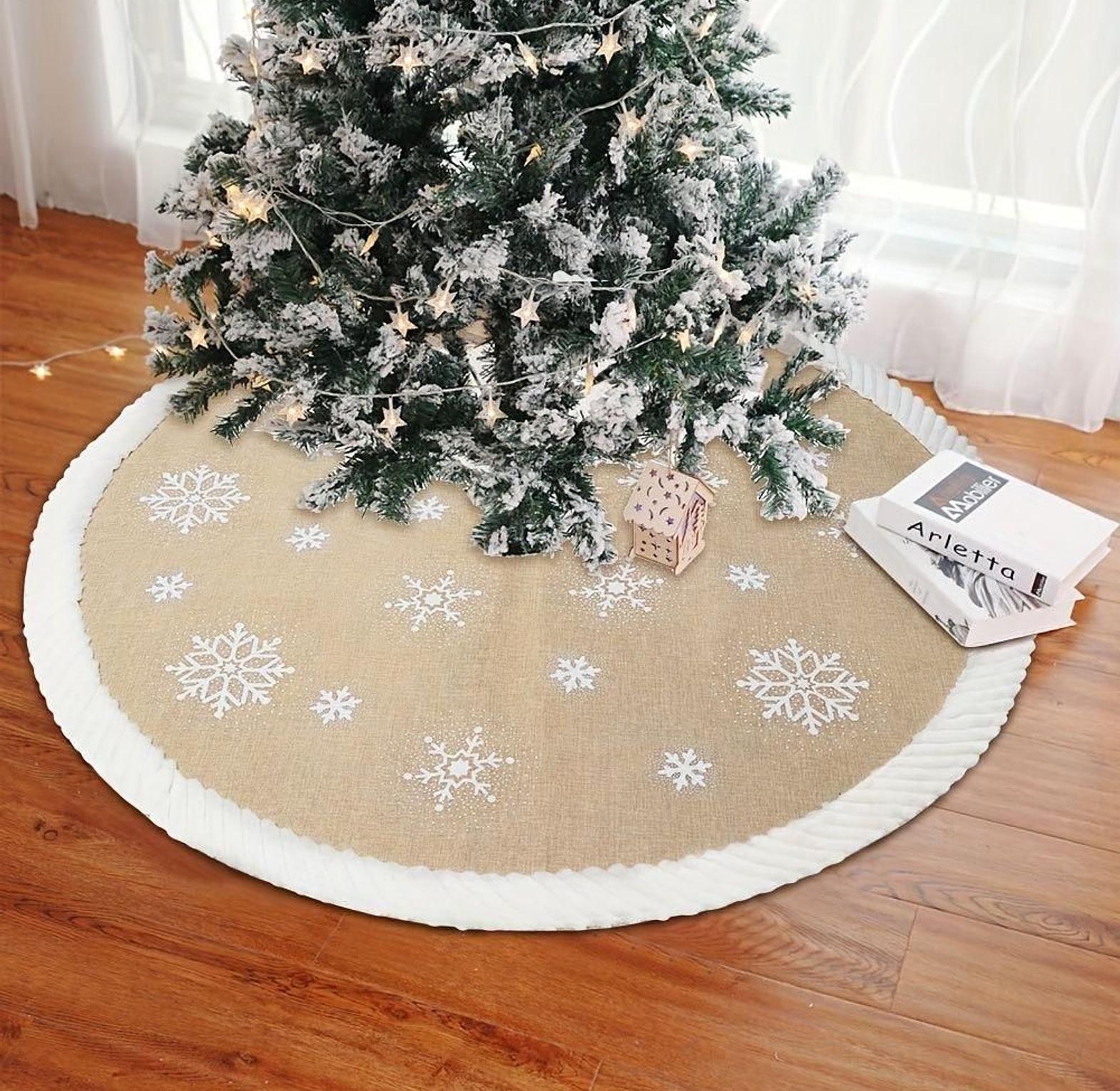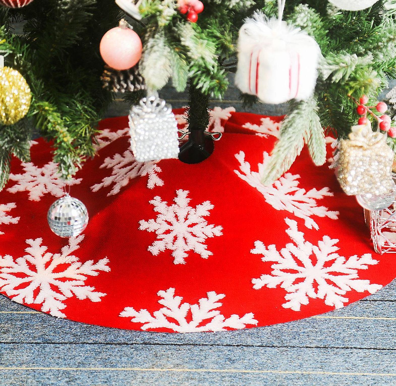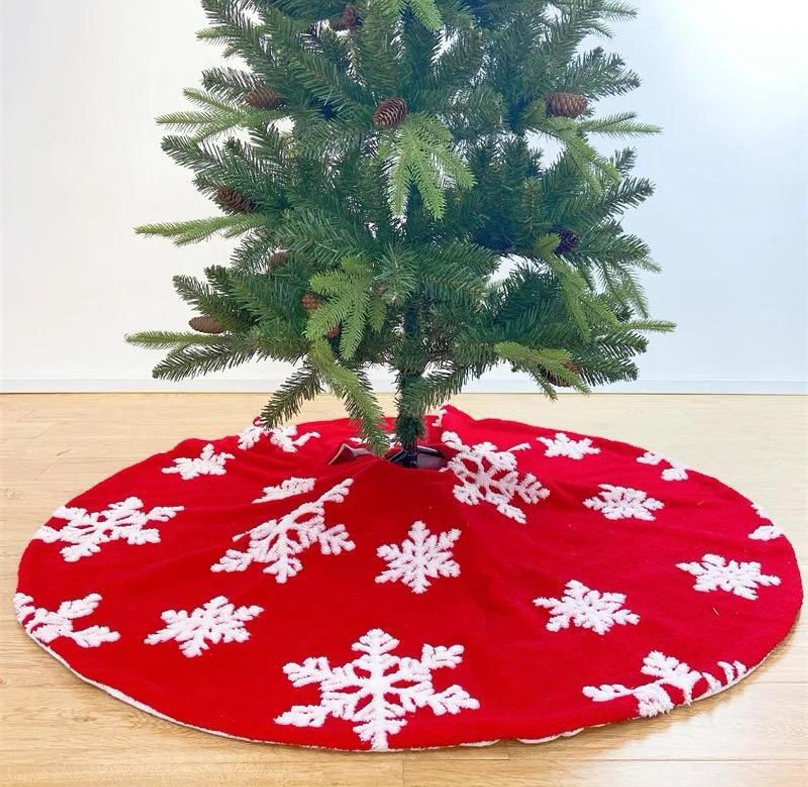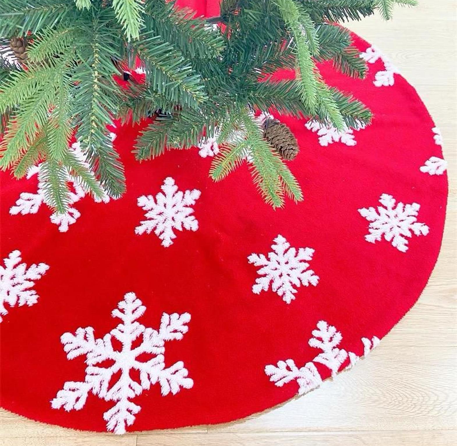 Anchor your holiday display with the charming Winter Wonderland Snowflake Tree Skirt, designed to add a warm, finished look beneath your Christmas tree. This delightful 90cm diameter skirt features a richly colored, festive Red fabric base and White cream accents that provides a vibrant contrast to your floor and the tree itself. It is beautifully accented with intricate, plush White snowflake patterns that evoke the serene magic of a snowy holiday season. Beyond its aesthetic appeal, the skirt offers a practical solution, concealing the tree stand while creating an attractive stage for wrapped presents and helping to keep the area tidy by collecting stray needles. The soft, durable material ensures this foundational piece will remain a cherished part of your seasonal traditions for years to come.